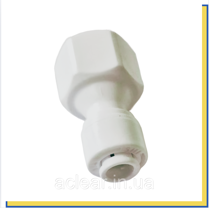 Фітінг прямий 1/4 дюйма трубка - 3/8 дюйма внутрішнє різьблення . Використовується в системах очищення води та інших інженерних рішеннях, які потребують герметичних з'єднань.